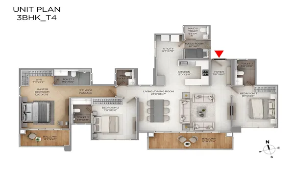 3+ Maid BHK Apartments Floor Plan